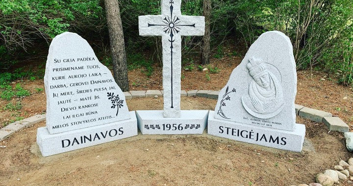 Camp Dainava, from its inception, was built through the efforts of dedicated volunteers. A considerable group of volunteers has also stepped up for these enormous renovation works. The following volunteers performed a large part of the previously mentioned improvements: Zita and Antanas Kuseliauskas and Audrius, Rita and Petras Rusenas took care of updating the kitchen and electrical systems. The buildings were painted by Vitas Underys, Ruta and Linas Mikulionis, Vitas Sirgedas, Kastytis Giedraitis, Egle and Marius Laniauskas and the Gaska family. Installation of benches at the campfire site, restoration of fishing piers, clearing of forests, etc. was accomplished through the efforts of Marius Grazulis, Ramunas Balciunas, Rima and Tadas Birutis, Marius Polikaitis, Dana Rugienius, Rich Tarbunas and Ron Padalino. Algis and Saulius Petrulis did some heavy lifting by moving and arranging all of the beds in the barracks, after the installation of the new floors. The design and installation of the monument was headed up by the Board of Directors chaplain, Father Lukas Laniauskas, SJ.